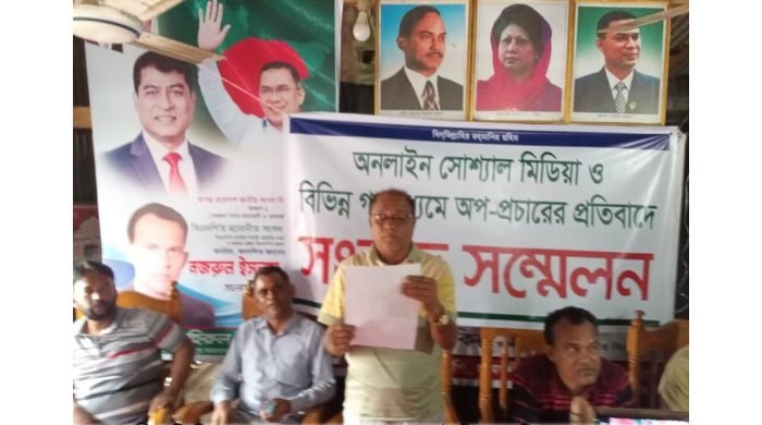ওই চক্রই গত তিন মাস আগের একটি শালিস বৈঠকের ভিডিও এডিট করে সামাজিক যোগাযোগ মাধ্যমে ছেড়ে দেয়। বিভিন্ন ফেইক আইডি দিয়ে ভিডিও ছেড়ে আমাকে সামাজিক ও রাজনীতিকভাবে হেনেস্থা করছে এবং বিভিন্ন অনলাইন পত্রিকায় আমার বক্তব্য বিকৃতি করে প্রচার করছে। এমন কাজের সাথে জড়িতদের বিরুদ্ধে আমি দ্রুত আইনী ব্যবস্থা নেয়া হবে। সংবাদ সম্মেলনে আরো উপস্থিত ছিলেন উপজেলা বিএনপির সাবেক সিনিয়র যুগ্ম আহবায়ক মোঃ জহিরুল ইসলাম ভিপি মামুন, কামরুজ্জামান হিরু, উপজেলা যুবদল সভাপতি কবির উদ্দিন ফকির, তোফাজ্জেল হোসেন, মতিউর রহমান মানিক, মাইনুদ্দিন মামুন ও মোঃ ফারুক মৃধা প্রমুখ।