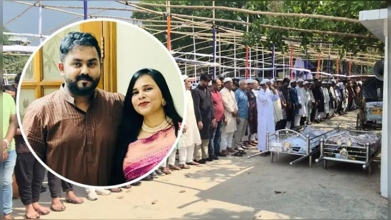 বৃহস্পতিবার (২৬ মার্চ) দুপুর আড়াইটার দিকে রাজবাড়ীর শহীদ খুশি রেলওয়ে মাঠে স্বামী-স্ত্রীর একসঙ্গে জানাজা অনুষ্ঠিত হয়। জানাজা শেষে রাজবাড়ী পৌরসভার নতুন বাজার কবরস্থানে তাদের দাফন করা হয়।