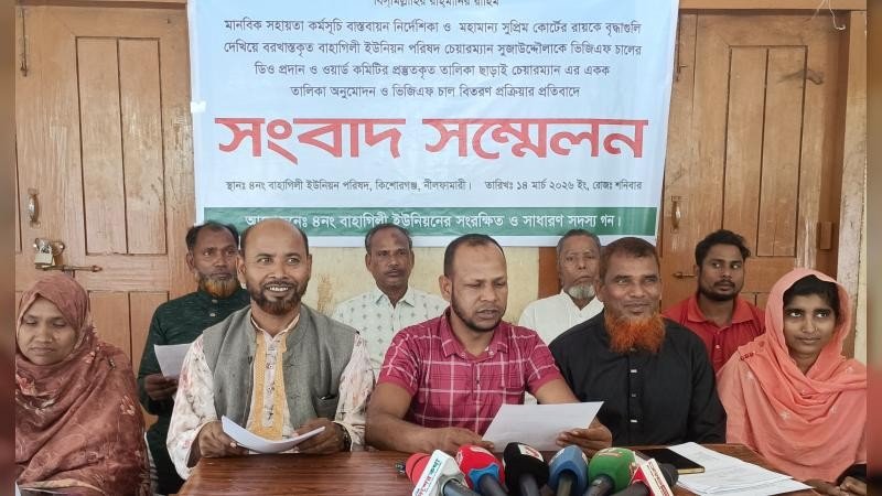 শনিবার (১৪ মার্চ) দুপুরে বাহাগিলী ইউনিয়ন পরিষদ চত্বরে তারা এ সংবাদ সম্মেলন করে। সংবাদ সম্মেলনে ইউপি সদস্যরা জানান, মানবিক সহায়তা কর্মসূচি বাস্তবায়ন নির্দেশিকা ও মহামান্য সুপ্রিম কোর্টের রায়কে বৃদ্ধাঙ্গুলি দেখিয়ে বরখাস্তকৃত বাহাগিলী ইউনিয়ন পরিষদের চেয়ারম্যান সুজাউদ্দৌলাকে ভিজিএফ চালের ডিও প্রদান, ওয়ার্ড কমিটির প্রস্তুতকৃত তালিকা ছাড়াই ওই চেয়ারম্যানের একক তালিকা অনুমোদন ও ভিজিএফ চাল বিতরণ প্রক্রিয়ার প্রতিবাদে আমরা আপনাদের নিয়ে সংবাদ সম্মেলন করছি। তারা জানান, কিশোরগঞ্জ উপজেলায় ভিজিএফ তালিকা ও বিতরণে সরকারি নীতিমালা ও বাংলাদেশ সরকারের আইন চরমভাবে লংঘন করা হয়েছে। নীতিমালায় যেখানে ওয়ার্ড কমিটি কর্তৃক তালিকা প্রস্তুত ও ইউনিয়ন কমিটি কর্তৃক যাচাই বাছাই পূর্বক অনুমোদনের জন্য উপজেলা কমিটিকে প্রেরণের কথা বলা আছে। সেখানে ওয়ার্ড কমিটির কোন কার্যক্রম ছাড়াই ইউপি চেয়ারম্যান নিজেই তালিকা প্রস্তুত করে এবং চেয়ারম্যানদের ডেকে নিয়ে ওই তালিকা অনুমোদন করা হয়েছে বলেও জানতে পেরেছি। মহামান্য সুপ্রিম কোটের রায়ে বরখাস্তকৃত চেয়ারম্যান সুজাউদ্দৌলা একক সিদ্ধান্তে গোপনে তালিকা করেছেন, ওই তালিকাই নেই ওয়ার্ড কমিটির স্বাক্ষর। সে তালিকার অনুমোদনও একটি আইন লংঘন।