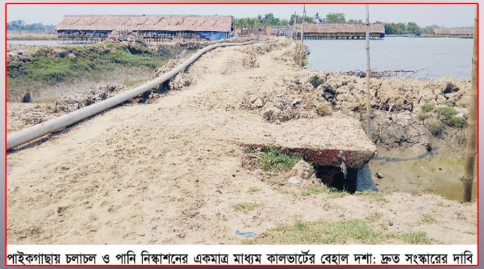 পাইকগাছায় চলাচল ও পানি নিস্কাশনের একমাত্র মাধ্যম কালভার্টের বেহাল দশা: দ্রুত সংস্কারের দাবি এলাকাবাসীর