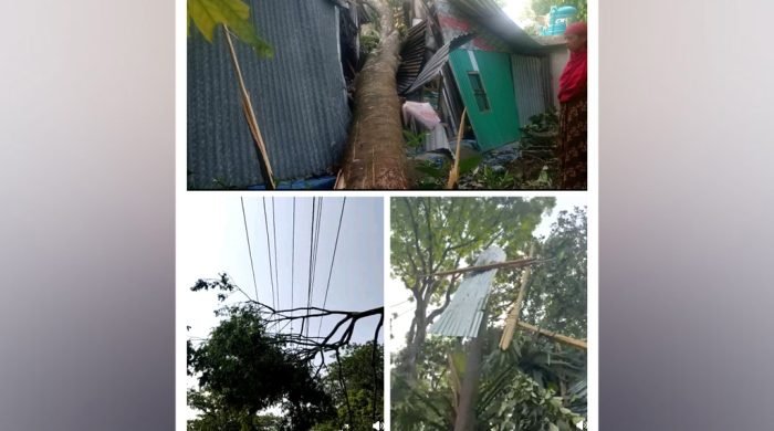 বিদ্যুতের খুঁটি উপড়ে পড়ে ও গাছ পড়ে তার ছিঁড়ে এলাকায় বিদ্যুৎ সংযোগ বিচ্ছিন্ন হয়ে পড়ে। বুধবার(২৫ মার্চ-২০২৬) রাত ৭টার পর কালবৈশাখী ঝড়ে এ ঘটনা ঘটে। আধাঘন্টা বয়ে যায় এ কালবৈশাখী ঝড়ের তান্ডব।
