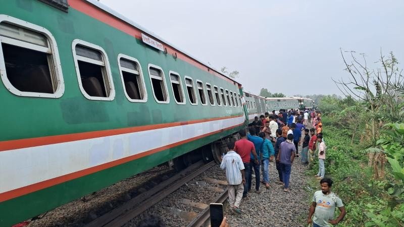 সান্তাহারে ট্রেন দুর্ঘটনায় উঠে গেছে রেললাইন, আহত শতাধিক