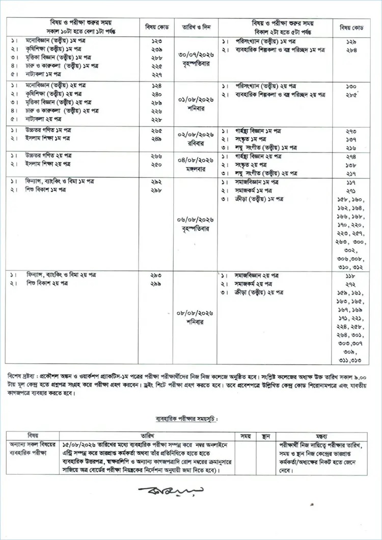 বিশেষ প্রয়োজনে বোর্ড কর্তৃপক্ষ এ সময়সূচি পরিবর্তন করতে পারবে বলে রুটিনে উল্লেখ করা হয়েছে।