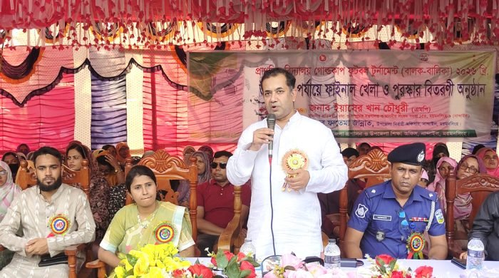 আজ শুক্রবার (২৪ এপ্রিল )ময়মনসিংহের নান্দাইল উপজেলা পর্যায়ের প্রাথমিক বিদ্যালয় গোল্ডকাপ ফুটবল টুর্নামেন্টের ফাইনাল খেলায় চণ্ডীপাশা সরকারি হাই স্কুল খেলার মাঠে প্রধান অতিথির বক্তব্যে