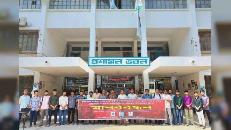 মানববন্ধনে সাংবাদিকরা ঢাকা বিশ্ববিদ্যালয়ের সাংবাদিকদের ওপর হামলার সঙ্গে জড়িত ব্যক্তিদের দ্রুত শনাক্ত করে মামলা গ্রহণ, যথাযথ আইনগত ব্যবস্থা গ্রহণ, বিশ্ববিদ্যালয় থেকে তাদের বহিষ্কার এবং ক্যাম্পাসে স্বাধীন সাংবাদিকতার পরিবেশ নিশ্চিত করার দাবি জানান।