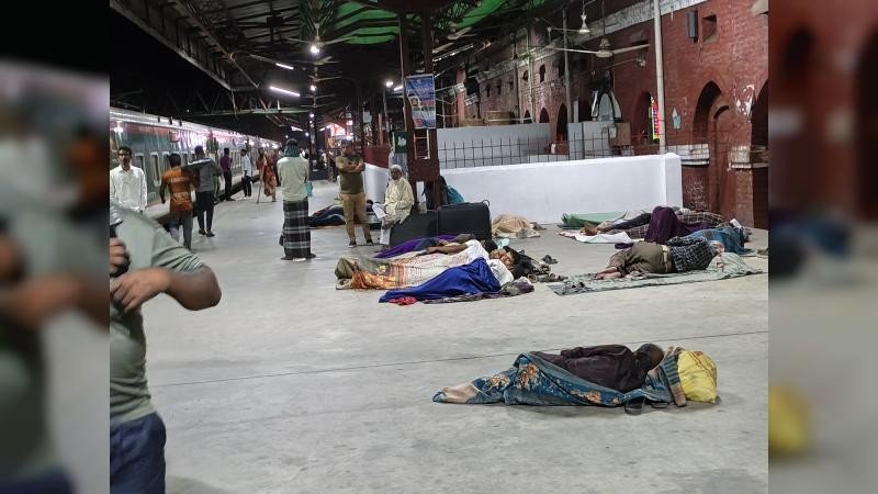 কিন্তু কয়েক পা হাঁটার পরই চোখ আটকে গেল এক দৃশ্যে— প্ল্যাটফর্মের মেঝেতে সারি সারি মানুষ। কেউ কাগজ পেতে, কেউ পুরনো চাদর জড়িয়ে, কেউবা খালি মেঝেতেই—ঘুমিয়ে আছে গভীর নিশ্চিন্ত ঘুমে।
