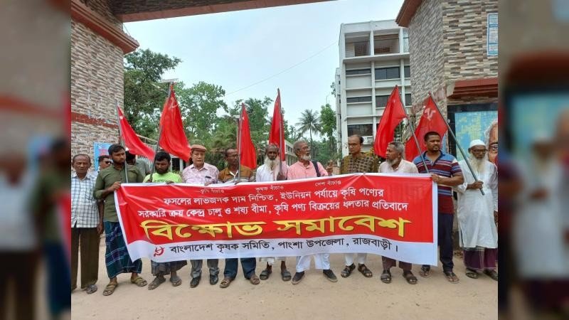 রাজবাড়ীর পাংশায় কৃষি পণ্য বিক্রয়ে ধলতা নেওয়া বন্ধ করা, ফসলের লাভজনক দাম নিশ্চিত, ইউনিয়ন পর্যায়ে সরকারি ক্রয়কেন্দ্র ও শষ্য বীমা চালুকরা সহ আট দফা দাবিতে বিক্ষোভ সমাবেশ ও স্মারকলিপি প্রদান করা হয়েছে।