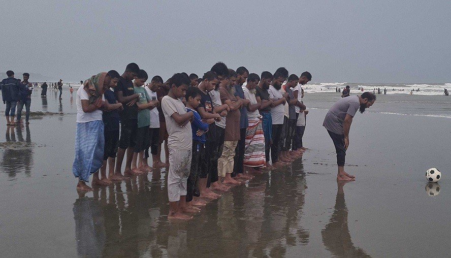 জানা গেছে, নরসিংদীর খিদিরকান্দি থেকে আসা ‘খাইরুল উম্মাহ আস-সালাফিয়াহ’ মাদ্রাসার শিক্ষক ও শিক্ষার্থীদের ৯৫ জনের একটি দল বার্ষিক ভ্রমণে কক্সবাজারে এসেছেন। তাদের মধ্য থেকে প্রায় ৩০ জন সৈকতের বালিয়াড়িতে জামাতে জোহর ও আসরের নামাজ আদায় করেন।