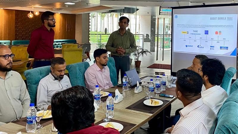 নলেজ শেয়ারিং সেশনে বি-ট্র্যাক সল্যুশনস লিমিটেডের প্রধান নির্বাহী কর্মকর্তা (সিইও) মোহাম্মদ তানভীর সিদ্দিক প্রতিষ্ঠানটির নতুন প্রযুক্তিসেবা নিয়ে কথা বলেন।
