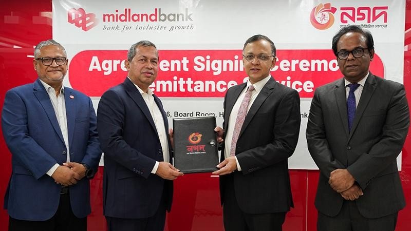 রেমিট্যান্স সেবা সহজ করতে নগদ ও মিডল্যান্ড ব্যাংকের চুক্তি