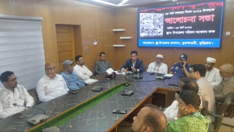 কুড়িগ্রামের ভূরুঙ্গামারীতে যথাযোগ্য মর্যাদায় ও বিনম্র শ্রদ্ধায় ২৫ মার্চ গণহত্যা দিবস পালিত হয়েছে। দিবসটি উপলক্ষে বুধবার (২৫ মার্চ) সকালে উপজেলা নির্বাহী অফিসারের সম্মেলন কক্ষে এক আলোচনা সভা অনুষ্ঠিত হয়।