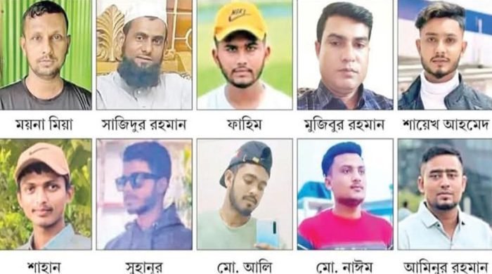 সুনামগঞ্জ জেলা প্রশাসনের সর্বশেষ তথ্যমতে, নিহতদের মধ্যে দিরাই উপজেলার ৬ জন, জগন্নাথপুরের ৫ জন এবং দোয়ারাবাজার উপজেলার ১ জন রয়েছেন। নিহতরা হলেন দিরাই উপজেলা তারাপাশা গ্রামের নুরুজ্জামান সরদার ময়না (৩০), সাজিদুর রহমান (২৮), শাহান মিয়া (২৫); রনারচর গ্রামের মুজিবুর রহমান (৩৮); বাসুরি গ্রামের মো. সুহানুর রহমান এবং মাটিয়াপুর গ্রামের তায়েফ মিয়া। জগন্নাথপুর উপজেলা পাইলগাঁও গ্রামের আমিনুর রহমান (৩৫); রানিগঞ্জ ইউনিয়নের ইছগাঁও গ্রামের মোহাম্মদ আলী (২৭) ও টিয়ারগাঁও গ্রামের শায়েখ আহমদ (২২); চিলাউরা হলদিপুর ইউনিয়নের নাইম আহমদ (২৫) এবং চিলাউরা মাঝপাড়া গ্রামের ইজাজুল হক সজীব (২৭)। দোয়ারাবাজার উপজেলা কবিরনগর গ্রামের আবু ফাহিম মুন্না (২২)।