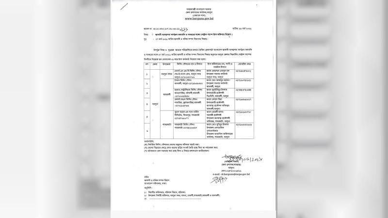 বরগুনার জেলা প্রশাসক (ভারপ্রাপ্ত) অনিমেষ বিশ্বাস স্বাক্ষরিত এক চিঠিতে বরগুনার সকল পেট্রোল পাম্পের বিপরীতে একজন করে সরকারি কর্মকর্তা নিয়োগ দেওয়া হয়েছে। চলমান বৈশ্বিক প্রেক্ষাপটে জ্বালানি ব্যবস্থাপনা কার্যক্রম তদারকি ও সমন্বয়ের লক্ষ্যে জ্বালানি ও খনিজ সম্পদ বিভাগের ২০১৬ সালের ২৭ মার্চের সিদ্ধান্ত অনুসারে গত ২৯ মার্চ এই নিয়োগ দেওয়া হয়।