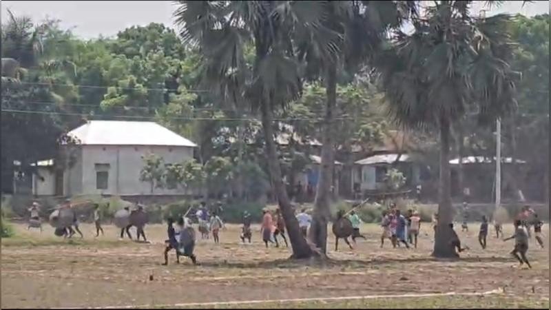 কিন্তু জমি মাপামাপির একপর্যায়ে উভয়পক্ষের সমর্থকদের মধ্যে কথাকাটাকাটি শুরু হয়ে তা দ্রুত হাতাহাতিতে রূপ নেয়। পরে পরিস্থিতি নিয়ন্ত্রণের বাইরে চলে গেলে উভয়পক্ষের প্রায় ২০০ থেকে ৩০০ সমর্থক দেশীয় অস্ত্রশস্ত্র নিয়ে সংঘর্ষে জড়িয়ে পড়ে। প্রায় এক ঘণ্টাব্যাপী ধাওয়া-পাল্টা ধাওয়া ও সংঘর্ষ চলে। সংঘর্ষ চলাকালে বেশ কয়েকটি বসতবাড়িতে হামলা চালিয়ে ভাঙচুর করা হয়। ক্ষতিগ্রস্তদের মধ্যে মেহেদী মুন্সী, মিন্টু মুন্সী, সেলিম মুন্সী, হালিম মীর, মান্দার শেখ, মিজা, সেলিম চোকদার ও আসাদ শেখের বাড়ি রয়েছে। এ ঘটনায় আহতদের মধ্যে আব্বাস মাতুব্বর, তমিজদ্দিন মাতুব্বর, আসাদ শেখ, রাজ্জাক শেখ, পিকুল মাতুব্বর, লিটন মীর ও আলিম মীরকে নগরকান্দা উপজেলা স্বাস্থ্য কমপ্লেক্সে ভর্তি করা হয়েছে। অন্যদের প্রাথমিক চিকিৎসা দেওয়া হয়েছে।