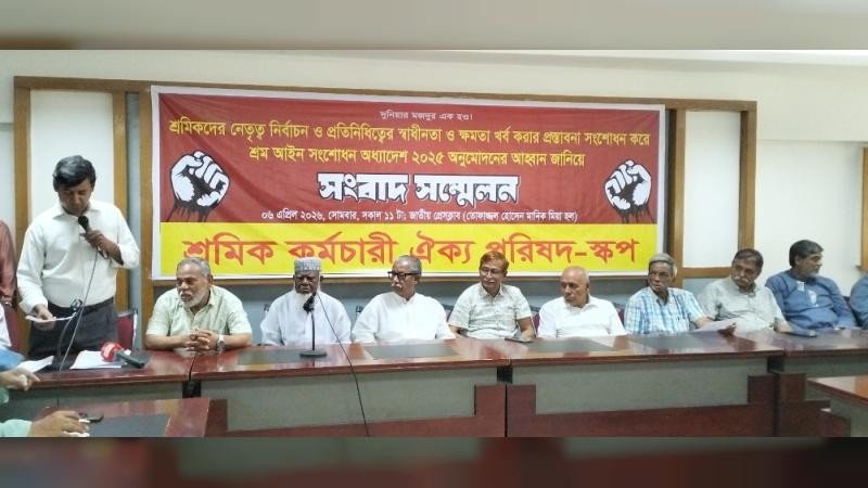 বাংলাদেশ শ্রম (সংশোধন) অধ্যাদেশ, ২০২৫-এর শ্রমিক স্বার্থবিরোধী প্রস্তাবনাগুলো সংশোধন করে তা চলতি সংসদ অধিবেশনেই বিল আকারে পাসের দাবি জানিয়েছে শ্রমিক-কর্মচারী ঐক্য পরিষদ (স্কপ)। একই সঙ্গে শ্রমিকদের নেতৃত্ব নির্বাচনের স্বাধীনতা ও যৌথ দরকষাকষির অধিকার খর্বকারী ধারাগুলো বাতিলের আহ্বানও জানানো হয়।