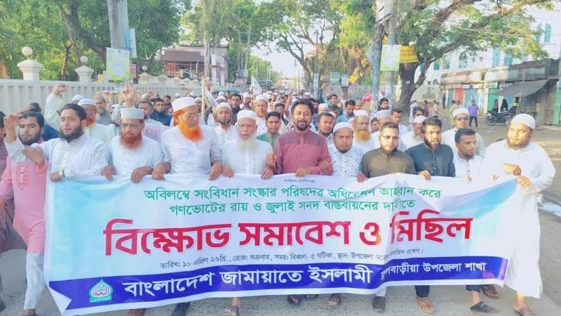 ময়মনসিংহের ফুলবাড়িয়ায় গণভোটের রায়ের বিরুদ্ধে সরকারি দলের অবস্থানের প্রতিবাদে এবং অবিলম্বে সংবিধান সংস্কার পরিষদের অধিবেশন আহ্বান করে গণভোটের রায় ও জুলাই সনদ বাস্তবায়নের দাবিতে বিক্ষোভ মিছিল করেছে জামায়াতে ইসলামী।