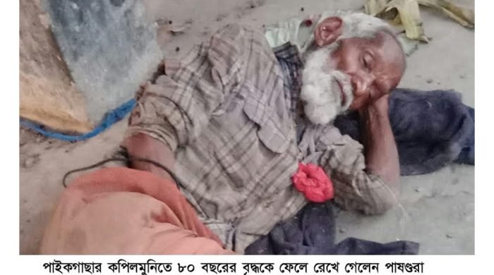 একমাস ধরে বাজারে আগতদের খাবারে কোন রকম বেঁচে থাকার লড়াই করে যাচ্ছেন অজ্ঞাত এই বৃদ্ধ। কথা বলতে পারেন না তিনি। উপজেলার কপিলমুনির কাশিমনগর বাজারে গিয়ে দেখা যায়, কাশিমনগর জামে মসজিদের সামনে অবস্থিত ছাগল বিক্রির জায়গা (চান্নিতে) অজ্ঞাত এক বয়োবৃদ্ধ শুয়ে আছেন। গায়ে শাট ও পরনে হাফপ্যান্ট পরা। বয়স আনুমানিক ৮০ বছর।