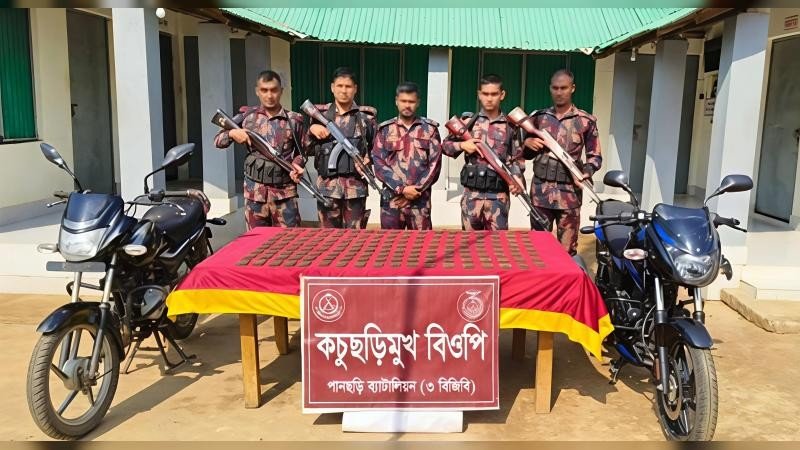 পানছড়ি ব্যাটালিয়ন (৩ বিজিবি) এর অধিনায়ক লেফটেন্যান্ট কর্নেল মো. রবিউল ইসলাম জানান, সীমান্ত এলাকায় অবৈধ অস্ত্র ও গোলাবারুদসহ সব ধরনের চোরাচালান প্রতিরোধে বিজিবি সর্বদা সতর্ক রয়েছে।