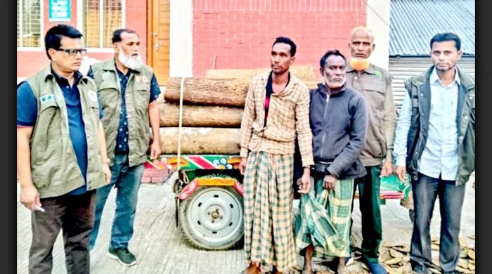 শেরপুর সীমান্তের গারো পাহাড় বনাঞ্চলে চলছে নির্বিচারে বৃক্ষ নিধন; গাছসহ আটক-২