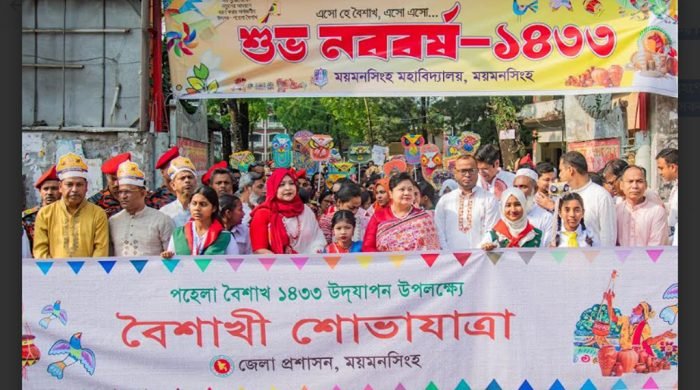 বাঙালির সার্বজনীন উৎসব বাংলা নববর্ষ, ১৪৩৩-কে সাদরে বরণ করে নিতে ময়মনসিংহ অঞ্চলের সকল জাতিগোষ্ঠী, ধর্ম-বর্ণ, সকল বয়সি নাগরিকদের অংশগ্রহণে ময়মনসিংহে বর্ণিল শোভাযাত্রা, সাংস্কৃতিক অনুষ্ঠান ও আলোচনা অনুষ্ঠিত হয়েছে।