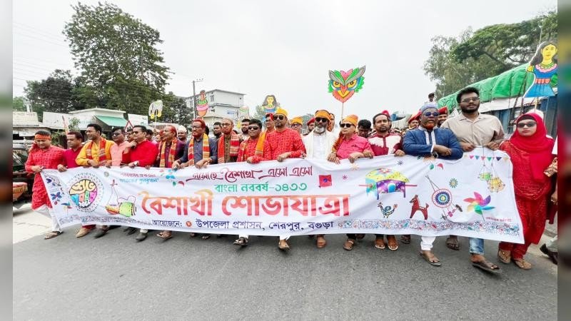 শেরপুরে বর্ণিল শোভাযাত্রা ও সাংস্কৃতিক আবহে নতুন বছরকে বরণ