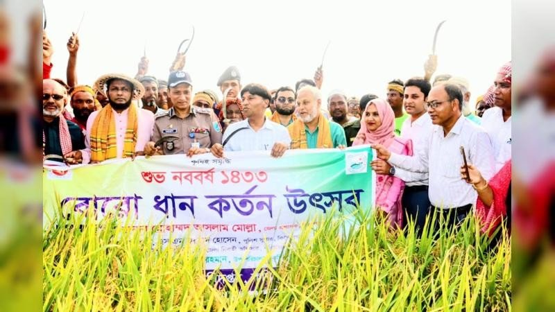 পরে তিনি নিজ হাতে ধান কেটে কৃষকদের সঙ্গে আনন্দঘন মুহূর্তে অংশ নেন, যা পুরো আয়োজনকে আরও প্রাণবন্ত করে তোলে।
