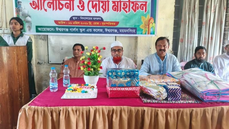 ময়মনসিংহের ঈশ্বরগঞ্জ গার্লস স্কুল এন্ড কলেজে এসএসসি ও ভোকেশনাল পরীক্ষার্থীদের বিদায় উপলক্ষে আলোচনা সভা ও দোয়া মাহফিল অনুষ্ঠিত হয়েছে। বৃহস্পতিবার (১৬ এপ্রিল) বেলা ১টায় প্রতিষ্ঠানটির নিজস্ব হলরুমে এই বিদায় অনুষ্ঠানের আয়োজন করা হয়।