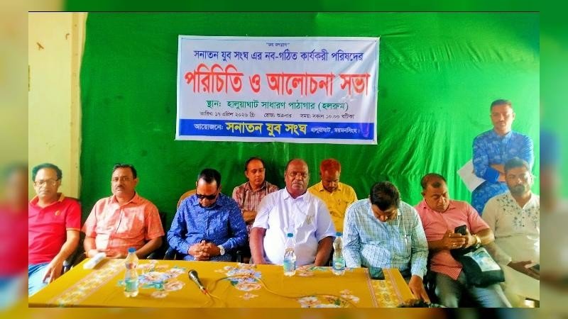 ময়মনসিংহের হালুয়াঘাটে সনাতন যুব সংঘের ৮১ সদস্য বিশিষ্ট নবগঠিত কার্যকরী পরিষদের পরিচিতি ও আলোচনা সভা অনুষ্ঠিত হয়েছে। শুক্রবার সকালে হালুয়াঘাট সাধারণ পাঠাগার হলরুমে আয়োজিত এ সভায় সংগঠনের সদস্যবৃন্দ, গণ্যমান্য ব্যক্তিবর্গ এবং যুবসমাজের অংশগ্রহণে উৎসবমুখর পরিবেশ সৃষ্টি হয়।