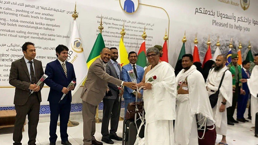 বিমানবন্দরে বাংলাদেশি হজযাত্রীদের স্বাগত জানান সৌদি আরবে নিযুক্ত বাংলাদেশের রাষ্ট্রদূত মো. দেলওয়ার হোসেন এবং কাউন্সিলর (হজ) মো. কামরুল ইসলাম। এ সময় হজযাত্রীদের ফুল দিয়ে শুভেচ্ছা জানানো হয় এবং তাদের হাতে রিফ্রেশমেন্ট কিট তুলে দেওয়া হয়।