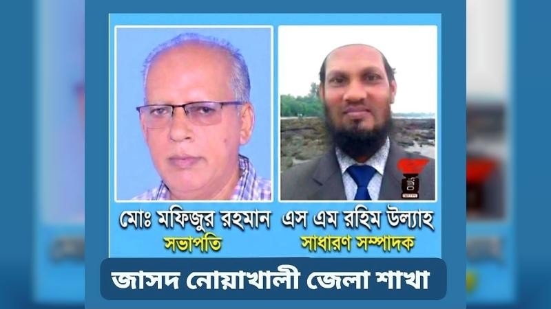 মফিজুর রহমানকে সভাপতি ও এস.এম রহিম উল্লাহকে সাধারণ সম্পাদক করে নোয়াখালী জেলা জাসদের আহবায়ক কমিটি ঘোষণা করা হয়েছে।