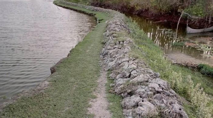 স্থানীয় মফিজুল বিশ্বাস জানান, এ রাস্তটি মুজিবর মেম্বরের সময় সর্বশেষ মাটি দিয়ে বাধা হয়। যার আড়ে ছিলো ১২ ফুট। পার্শবর্তী ঘের মালিক আব্দুর রব সরদার দীর্ঘদিন মৎস ঘের করছে। ঘেরের পানিতে প্রতি বছর বাঁধটি ভাঙছে। বর্তমানে ১২ ফুটের রাস্তাটি ৬ ফুটে এসে দাড়িয়েছে। ঘের মালিকের কারনে রাস্তা নষ্ট হচ্ছে।
