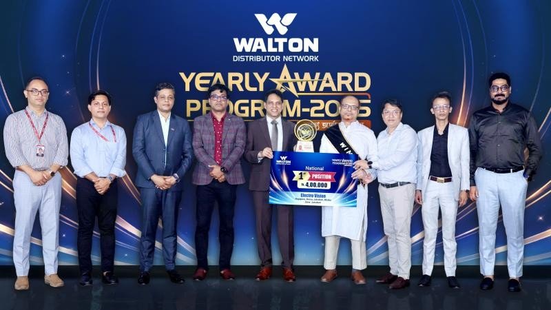 দেশজুড়ে ১৬৮ পরিবেশককে পুরস্কৃত করেছে ইলেকট্রনিক্স ও হোম অ্যাপ্লায়েন্স খাতের সুপারব্র্যান্ড এবং টেক জায়ান্ট ওয়ালটন| ২০২৫ সালে প্রতিষ্ঠানটির ডিজিটাল ক্যাম্পেইনের ব্যাপক প্রচার-প্রচারণার মাধ্যমে পণ্য বিপণনে বিশেষ অবদান রাখায় তাদেরকে পুরস্কৃত করা হয়|