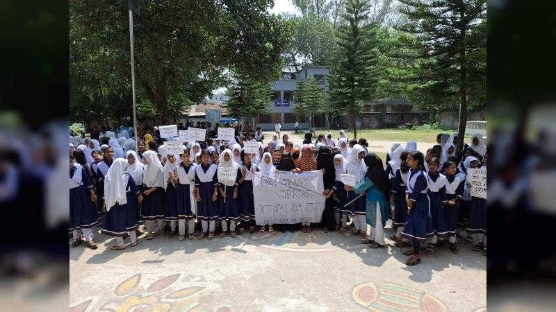 শিক্ষকের বিরুদ্ধে শিক্ষার্থীদের বিক্ষোভ মিছিল ও মানববন্ধন