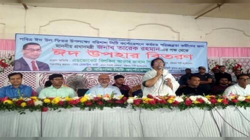 বরিশাল সিটি কর্পোরেশনের কর্মীদের প্রধানমন্ত্রীর ঈদ উপহার বিতরণ