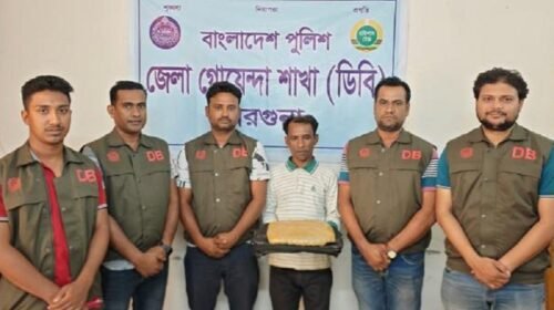 বরগুনায় জেলা গোয়েন্দা শাখা (ডিবি) পুলিশের বিশেষ অভিযানে এক কেজি গাঁজাসহ মো. রিপন (৪৫) নামে এক ব্যক্তিকে গ্রেফতার করা হয়েছে। গ্রেফতারকৃত মো. রিপন বরগুনা সদর উপজেলার এম বালিয়াতলী ইউনিয়নের পরীরখাল…