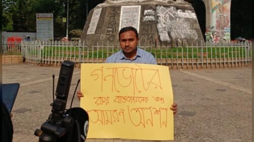 গণভোটের রায় বাস্তবায়ন ও জুলাই সনদের অপরাপর বিষয়গুলো বাস্তবায়নের জন্য পূর্ণাঙ্গ রোডম্যাপ প্রকাশের দাবিতে আমরণ অনমনে বসেছেন ঢাকা বিশ্ববিদ্যালয়ের (ঢাবি) শিক্ষার্থী মো. সাদিক মুনওয়ার মুনেম। তার এ দাবির সাথে একাত্মতা…