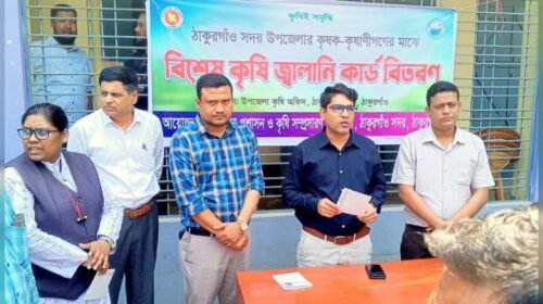 কৃষিতে স্বনির্ভর উত্তরের জেলা ঠাকুরগাঁওয়ে কৃষি কাজ নির্বিঘ্নে করতে "বিশেষ কৃষি জ্বালানি কার্ড" বিতরণ ও সরবরাহ করা হয়েছে। বুধবার (৮ এপ্রিল) দুপুরে সদর উপজেলা কৃষি কর্মকর্তার কার্যালয়ের সামনে এই কর্মসূচির…