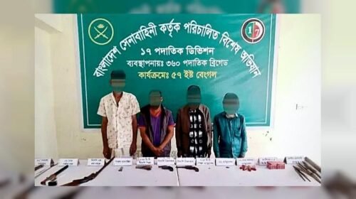 সুনামগঞ্জের জগন্নাথপুর উপজেলায় বিশেষ অভিযান পরিচালনা করে বিদেশি অস্ত্র, গোলাবারুদ ও মাদক উদ্ধার করেছে সেনাবাহিনী।বাংলাদেশ সেনাবাহিনীর প্রেস বিজ্ঞপ্তিতে জানানো হয়, বাহিনীর ১৭ পদাতিক ডিভিশনের ৩৬০ পদাতিক ব্রিগেডের অধীনস্থ একটি ইউনিট…