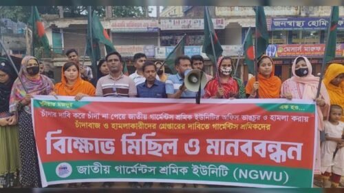 আশুলিয়ায় হামলা-ভাংচুরের ঘটনায় গ্রেফতার দাবীতে মানববন্ধন