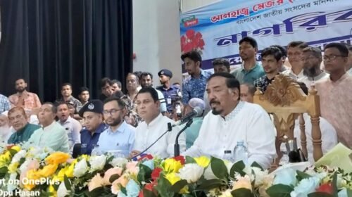 লালমোহনে স্পিকার মেজর হাফিজ উদ্দিন আহমেদকে নাগরিক সংবর্ধনা
